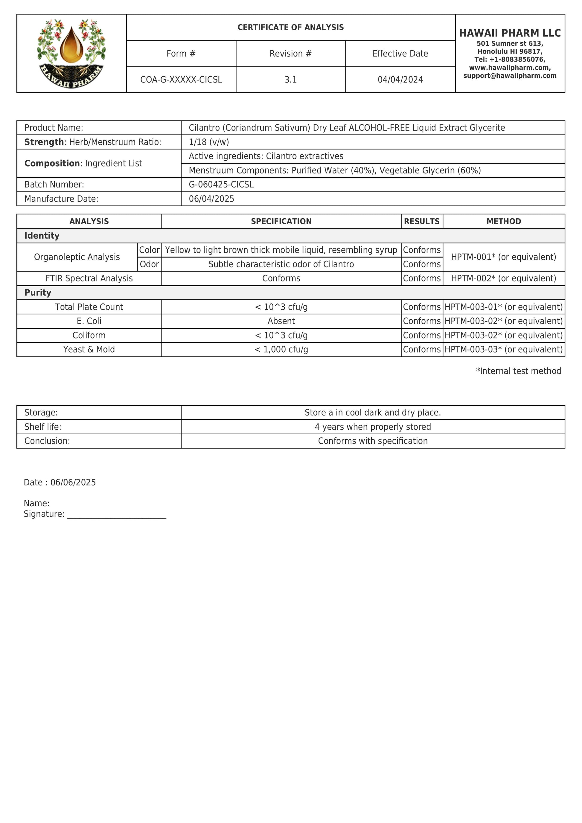 Въз основа на десетилетия опит в ботаниката, Hawaii Pharm определя оптималното съотношение между билката и разтворителя на всеки растителен вид.